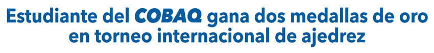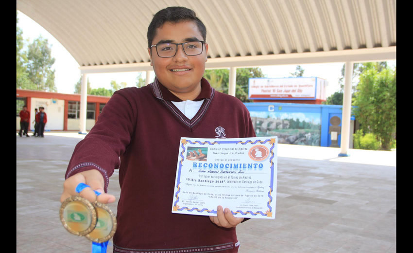 Juan Manuel Fortanelli Ríos, estudiante de quinto semestre del Plantel 10 San Juan del Río del Colegio de Bachilleres del Estado de Querétaro (COBAQ) obtuvo dos medallas de oro en el Torneo de Ajedrez “Villa Santiago 2018” realizado en la Ciudad de Santiago de Cuba del 1º al 11 de agosto; Juan Manuel fue primer lugar en la opción Blitz y primer lugar en Ritmo Clásico; ambos en la categoría para menores de 18 años en la rama masculina; por otro lado, este año Juan Manuel acudirá al Campeonato Mundial de la Juventud Sub 18, en la rama varonil, que se realizará en Grecia del 19 al 31 de octubre con la representación nacional.